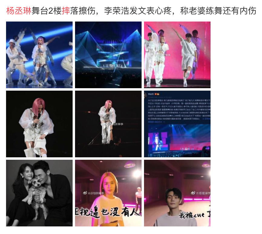 不久前杨丞琳还曾因从舞台2楼摔下上了热搜: