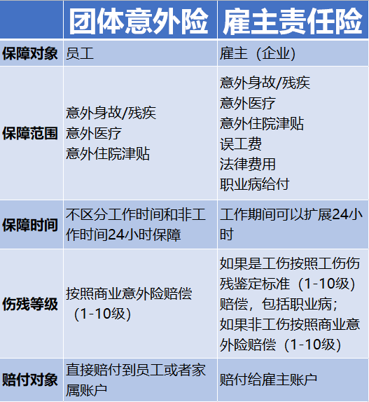 雇主责任险的保障范围比团队意外险的更全面。在三条基础范围内还增添了误工费、法律费用和职业病给付。