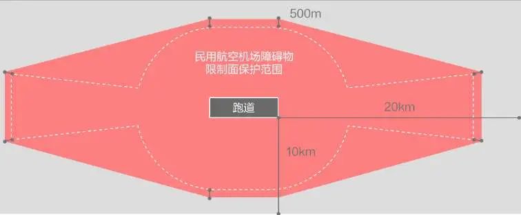 *禁飞区:将民用航空局定义的机场保护范图全标向外拓展500米,连接其中8个坐标形成八边形禁飞区。