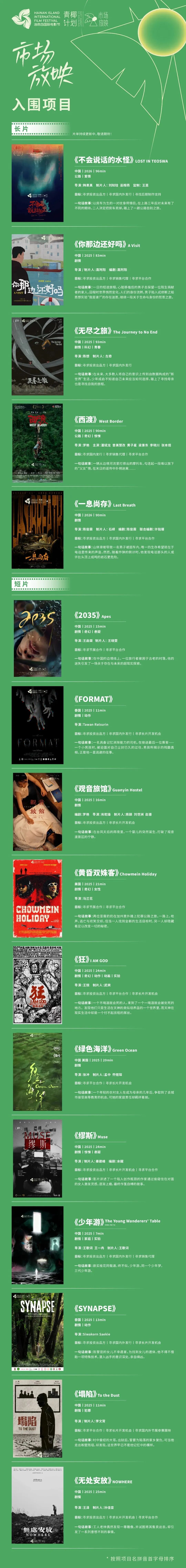 以下是市场放映入围项目,将于12月5日至6日面向产业嘉宾进行放映,并参与12月7日至8日举办的“青椰计划”产业洽谈。一起期待吧!