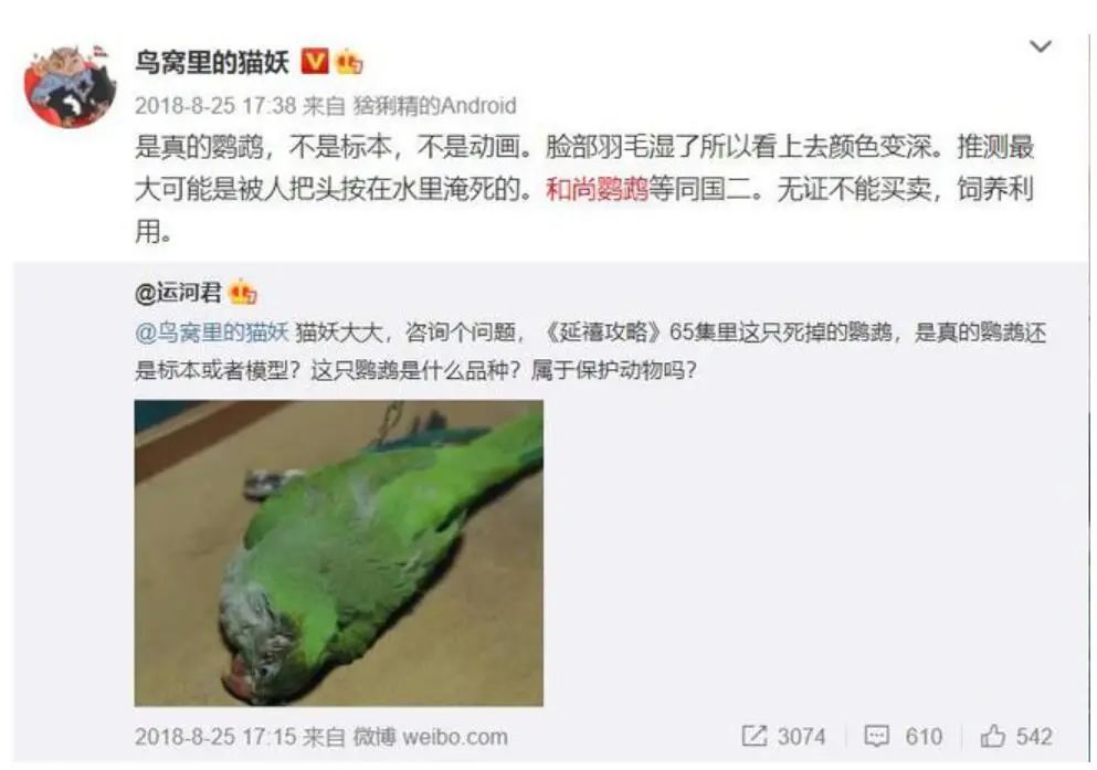 电视剧《犬王》的导演曾自曝,为了让表演显得更加真实,活生生炸死了一只训练有素、屡次立功的军犬,不但不觉得可耻,言语之间还将之当成一种荣耀;而电影《悲情布鲁克》的导演,为了追求拍摄的“真实效果”,将一匹马推下悬崖摔死,何其残忍!于正此前拍摄的大热剧《延禧攻略》,就曾被网友爆出杀死了国家二级保护动物和尚鹦鹉。