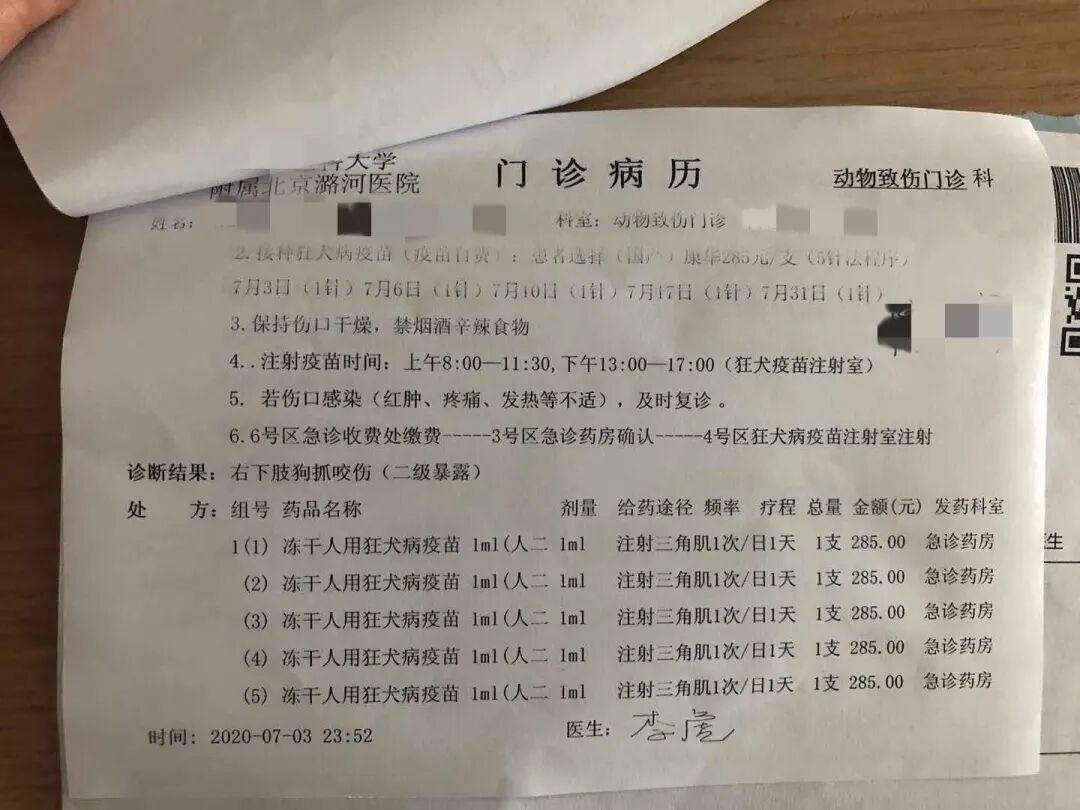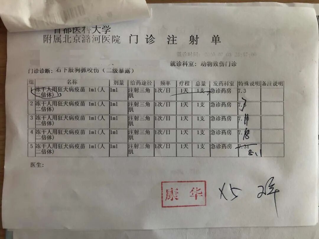 拍摄扶贫纪录片,一年都在内蒙古乡村,该地各种动物较多,7月2日在工作中,被兔子挠伤,医疗单位诊断为二级暴露伤口,需要注射狂犬疫苗。