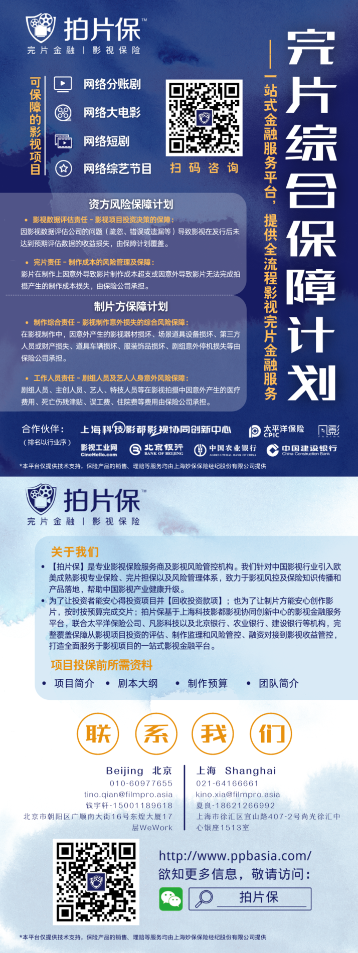 【拍片保】作为专业的影视保险服务商于2021年3月-2021年5月支持团队参与该电影的拍摄工作,为剧组的器材提供专业全面的保障服务!