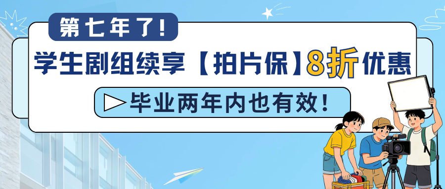 第七年了!学生剧组续享【拍片保】8折优惠,毕业两年内也有效!
